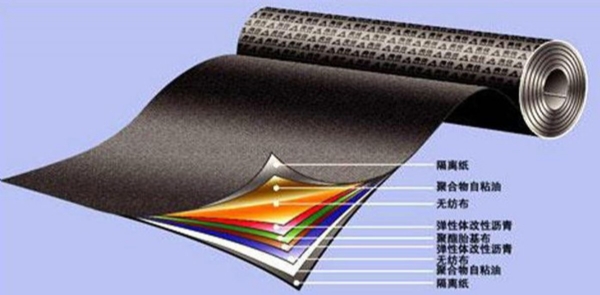 弹性体改性沥青防水卷材是以聚酯毡或玻纤毡为胎基,热塑性弹性体-SBS(苯乙烯-丁二烯-苯乙烯)橡胶改性沥青为基料,表面覆以聚乙烯膜、铝箔膜、砂粒、彩砂、页岩片所制成的建筑防水卷材。SBS等高聚物被彻底分散成强化网络结构,采用先进工艺精制而成,赋予了改性沥青防水卷材优异的性能。